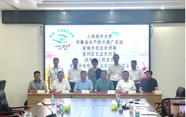 会上,李家乐代表学校与安徽省水产技术推广总站、宣城市农业农村局、宣州区农业农村局、洪林镇人民政府和洪林现代农业示范区管委会签订了《六方合作的产学研协议》,宣州区人民政府与上海海洋大学的《科技合作协议》。