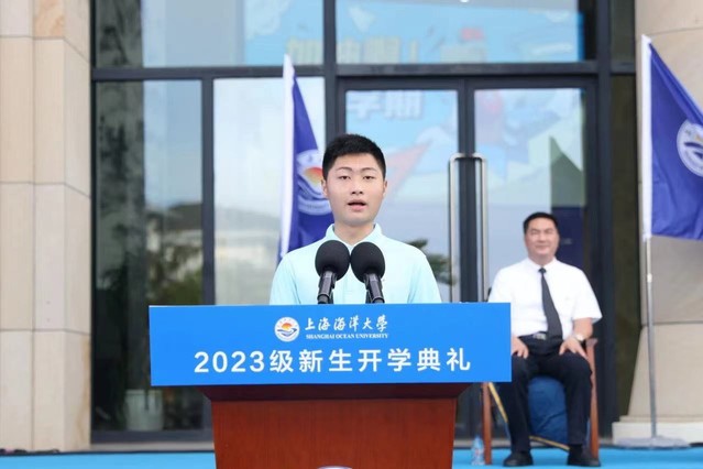 来自海洋生态与环境学院的新生代表王福鸿作为新生代表发言。他代表全体新生向关心生活成长的师长致以最真挚的敬意,分享了自己与海大的渊源,表达了自己以及所有新生对海大学习生活的憧憬与期盼。