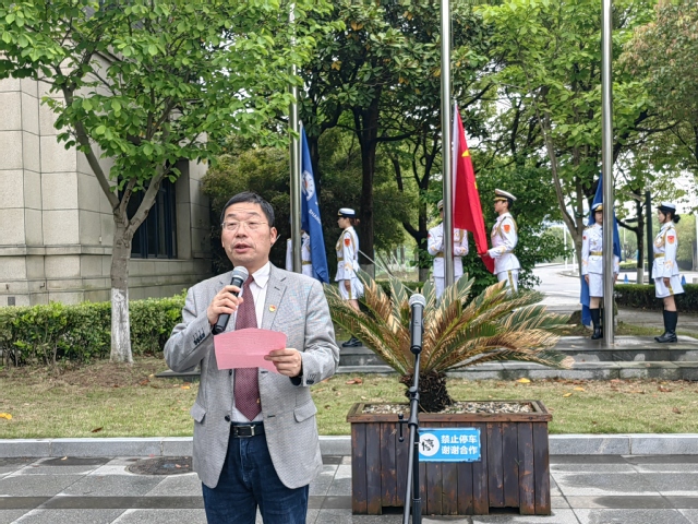 在校值班的校党委副书记、副校长宋敏娟,外国语学院党政领导、党委委员、基层党支部书记、部分学生干部、师生代表参加升旗仪式,仪式由外国语学院党委书记俞渊主持。