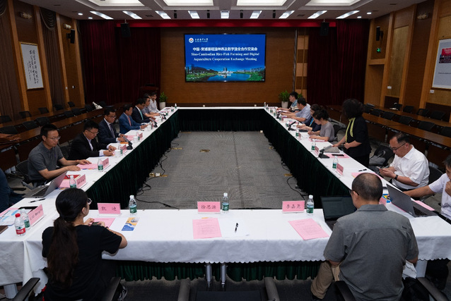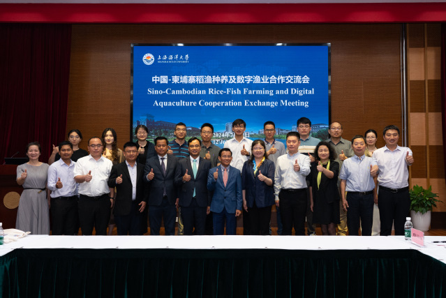 为了进一步推进中柬“鱼米走廊”建设,7月12日上午,我校和柬埔寨来访人员在图文中心共同举办了中国-柬埔寨稻渔种养及数字渔业合作交流会,柬方面参会人员为柬埔寨农林渔业部渔业局常务副局长哈·卫圣(Hav Viseth)先生和养殖处处长泰·索莫里(Thay Somony)、柬埔寨产业科技创新部副秘书长郭·菲德罗(Kuok Fidero)博士及柬埔寨皇家农业大学水产学院院长彭·本·俄尔(PengBun Ngor)教授,上海海洋大学副校长江敏、国际交流处、留学生办公室、科技处、水产与生命学院、工程学院和外国语学院相关人员参加了此次交流会,会议由水产与生命学院副院长孙诤主持。