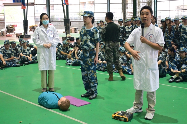 医务室人员全程跟踪军训,并为参训学子传授急救知识