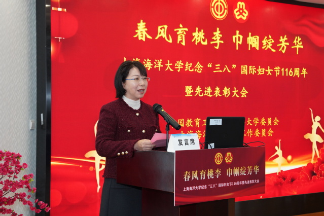 3月5日下午,上海海洋大学纪念第116个“三八”国际妇女节暨表彰大会在工会多功能厅举行。校党委副书记、工会主席潘燕,校党委常委、统战部部长、海洋生物资源与管理学院党委书记郑卫东,校党委常委、宣传部部长、保障与直属部门党委书记陈江华,相关职能部门负责人、获奖代表及师生代表齐聚一堂,共同庆祝节日。
