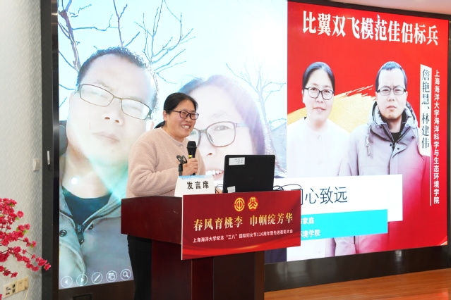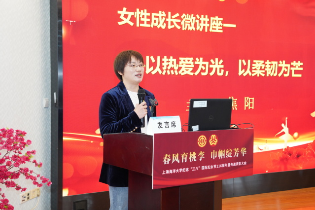 在随后的“女性成长微讲座”环节,上海市三八红旗手焦阳教授以“以热爱为光,以柔韧为芒”为题,分享了在科研道路上攻坚克难的感悟;“最美家庭”代表詹艳慧副教授以“家风润教同心致远”为题,讲述了夫妻二人相携成长、以家风促教风的动人故事。真挚的分享引发了现场强烈共鸣。