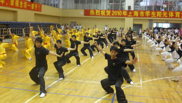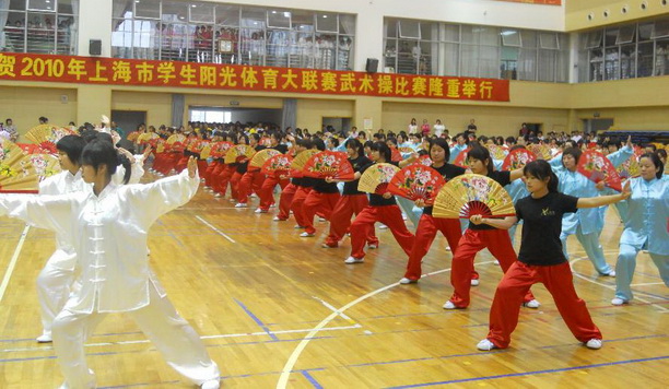 6月20日,我校武术队学生参加了在上海中医大学举行的上海市学生阳光体育大联赛拳操比赛。有27个高校,22个男子拳操代表队和20个女子功夫扇代表队参与了比赛。我校男子拳操代表队技压群雄获得了一等奖,我校女子功夫扇代表队获得了三等奖的好成绩。
