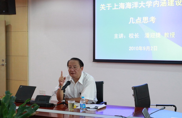 校长潘迎捷教授以“海大的昨天、今天和明天”为题,清晰而精辟地回顾了学校的发展历程,剖析了目前面临的挑战,展望了未来发展目标,提出了发展中需要重点建设的若干要素,并对青年教师成长提出了具体要求。在讲座中,潘校长首先回顾了学校近十年发展中经历的重大事件,指出我校抓住了难得的历史机遇,凝聚了人心,实现了重大突破,为学校新一轮发展奠定了坚实基础,目前学校正聚精会神地投入到内涵建设阶段,包括青年教师在内的全体员工要通过脚踏实地的努力,真正实现学校由传统的水产大学向新型的海洋大学转变、由行业特色鲜明高校向高水平特色大学转变、由两校区办学、市区办学为主转向远郊一校区办学。潘校长结合学科排名、教学质量保障、科研成果等数据分析了目前我校三大主干学科情况,提出在新一轮学科发展中要以三大学科为主、多学科协调发展的原则。面向未来,建设高水平特色大学征程中仍面临许多困难,潘校长提出要着力培养高水平的学生、具有竞争力的学科体系、提升国际化水平,并精辟概括了发展中几大重点要素:要以全面提高育人质量为核心任务;以加强师资队伍建设为基本要求;以坚持特色发展之路为必然抉择;以坚持分类指导为发展的重要途径;以培育大学精神为发展的强大精神动力。潘校长最后指出,目前海大正处在百年历史中的重要发展转折时期,面临着巨大的机遇和挑战,希望青年教师能够秉承勤朴忠实的校训,多做贡献,在奉献中实现人生价值,并借用温家宝总理在全国教育工作会议的一段讲话:“教育是心灵与心灵的沟通,灵魂与灵魂的交融,人格与人格的对话。教师应该成为传道、授业、解惑者,成为具有教育智慧的学者,成为人格修养的楷模”,勉励青年教师在新的岗位上建功立业。