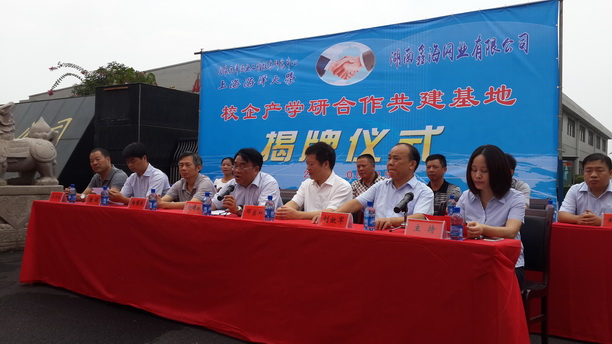 随后,黄硕琳副校长和刘放军董事长为基地揭牌。仪式结束后,校领导一行参观了湖南鑫海网业有限公司生产厂房,并就进一步深入合作举行了会谈。
