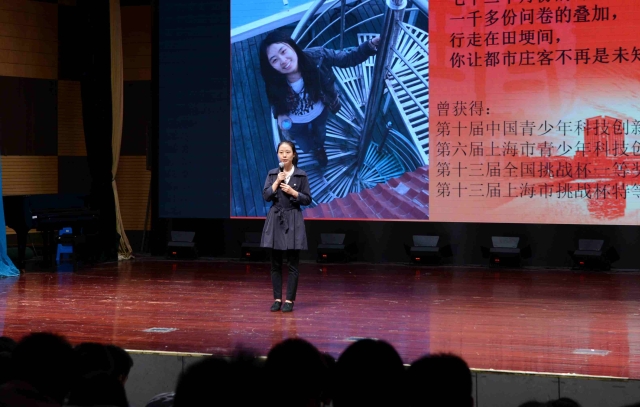 徐建华主编为本次报告会致辞。他对大学生年度人物在当代大学生思想引领上的积极作用表示了充分肯定,并表达了对当代大学生展现良好精神风貌、积极弘扬正能量的期望。同济大学赵文丞同学讲述了自己从落选到最终走上纪念中国人民抗日战争暨世界反法西斯战争胜利七十周年阅兵式的蜕变过程与心路历程;华东师范大学李露萍同学分享了在推进“农民农”群体生存状况的改善、都市新农业的发展以及新三农问题解决中的收获与感悟;东华大学曲梦瑶分享了智力助残志愿者服务队二十年的坚守与付出;上海电力学院沈勇杰同学讲述了走进社区的温馨故事;我校八一社戚显奇同学讲述了从退伍士兵再做学生“华丽转身”的酸甜苦辣与坚持。