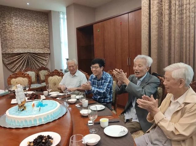 上海海洋大学林文平老师和当时还是学生的许四杰书记随同浦苓号赴日本海鱿钓作业,三十年后他们相聚在舟山国家远洋渔业基地小镇会客厅