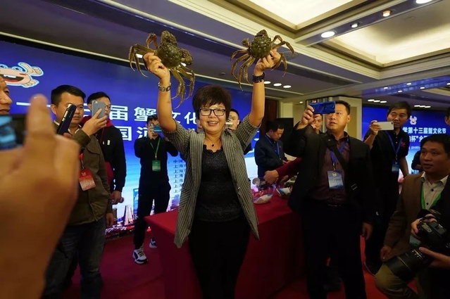 今年的大赛,来自上海、江苏、安徽、浙江、湖北、江西、山东、湖南、云南、重庆、台湾等河蟹产地,都送来了最好的河蟹。