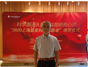 9月26日,由上海市科协、东方网指导,上海市科学技术普及志愿者协会等主办的“上海最美科普志愿者”颁奖仪式在上海科学会堂举行。中科院院士褚君浩、中国工程院院士钱锋、上海市科协副主席梁兆正、东方网党委副书记张庆玲等出席。我校九三学社陈舜胜教授获得“上海最美科普志愿者”称号。