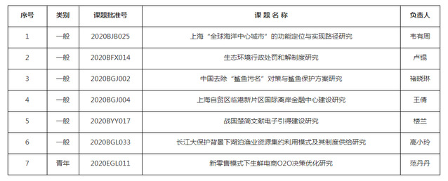 9月29日,2020年度上海市哲学社会科学规划课题立项名单正式公布,我校共7项课题入围。其中一般课题6项,青年课题1项,为我校历史最好成绩。
