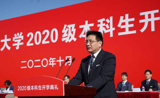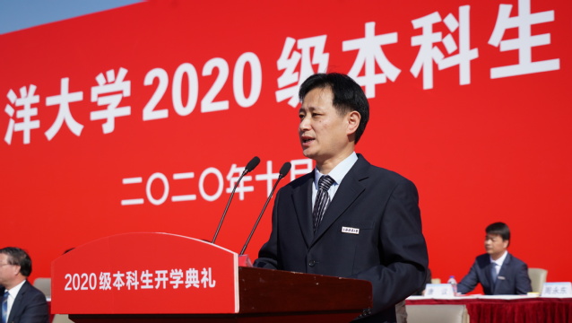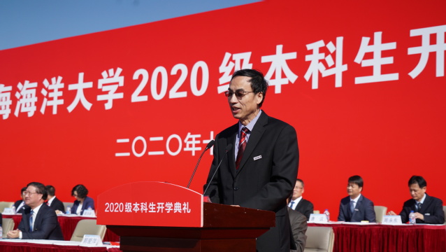 上午8时30分,典礼在雄壮的国歌声中拉开序幕。程裕东代表全校师生员工向2020级新生表示热烈欢迎。他说,同学们克服新冠肺炎疫情带来的影响,在疫情大考与人生大考交汇的关键时刻,经受住了考验,交出了合格答卷,要为大家点赞。他指出,学校始终秉承“勤朴忠实”校训精神,坚持“把论文写在世界的大洋大海和祖国的江河湖泊上”办学传统,发挥学科优势,对接国家战略需求,为国家地方经济社会发展做出了积极贡献,彰显了百年学府的办学使命和家国情怀。他希望同学们肩负起时代重任,把握发展机遇,把自己的人生目标与国家和民族的发展结合起来,加强学习、思考、实践、创新,注重阅读,开拓视野,交流思想,践行绿色可持续发展理念,弘扬节俭美德,努力把自己塑造成为适应时代发展的人才,从海洋走向世界,从海洋走向未来。