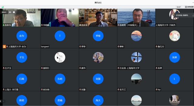 10月18日,由上海海洋大学主办、远洋渔业科学与技术战略创新团队承办的2020年度第四届渔业海洋学和人工智能海洋学研讨会视频会议召开。中国科学院海洋研究所研究员李晓峰,中国海洋大学教授田永军、陈朝晖、刘阳,博士李姝珺、马舒扬、朱瑞琛,自然资源部第二海洋研究所博士季悱,上海海洋大学海洋科学学院院长陈新军、副院长田思泉等海洋领域、渔业领域知名专家和教授,以及来自海洋类高校和研究机构的广大青年学者、远洋渔业科学与技术战略创新团队成员等85余人参与了此次会议。