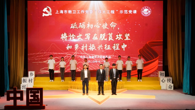 11月5日下午,上海市教卫工作党委系统第二季系列“伟大工程示范党课”——“砥砺初心使命,将论文写在脱贫攻坚和乡村振兴征程中”党课开讲,校党委书记吴嘉敏进行党课导读,上海市教卫工作党委党建服务中心负责人曹鹏、兄弟高校同仁等参加观摩交流,校领导,二级党组织负责人,党委委员,专职组织员、宣传员,师生党支部书记,党员代表300余人参加了现场党课。