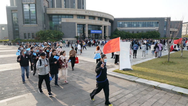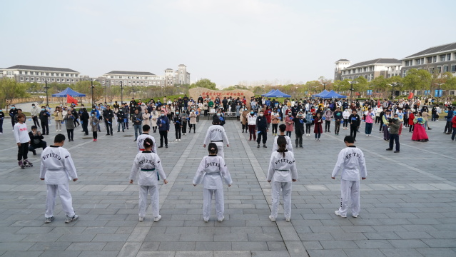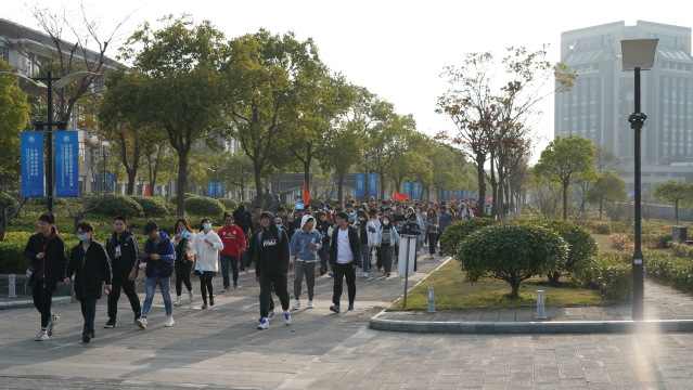 当日下午,图文信息中心大楼前是一片欢乐的海洋。寒冷的冬天阻挡不了师生们的热情。按照疫情防控要求,大家纷纷戴上口罩,保持了适当的距离。活动伊始,学生体育社团依次表演了跆拳道、轮滑、舞蹈等,在经过短暂的热身运动后,大家分批出发,沿着既定线路踏步行走。