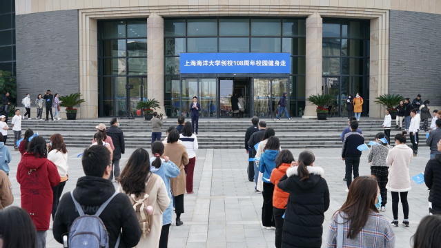 为庆祝上海海洋大学建校108周年,鼓励师生积极参加体育锻炼,展示学生社团活动风采,11月30日下午,上海海洋大学校庆月活动闭幕式暨师生健身走、社团文化月展示活动在图文信息中心大楼前举行。