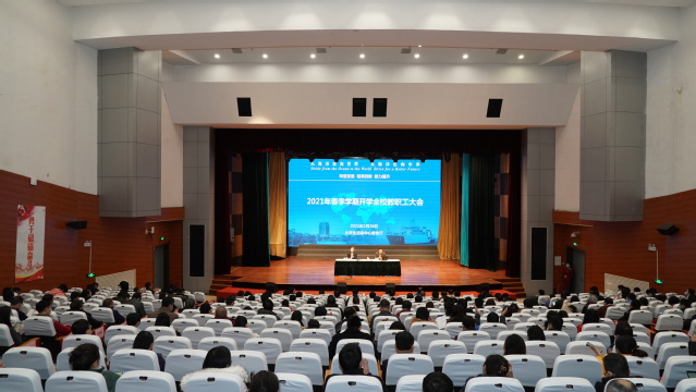 2月26日下午,2021年新学期全校教职工大会在大学生活动中心召开。全体校领导及教职工代表参加会议。会议由校党委书记吴嘉敏主持,校长程裕东作新学期开学报告。
