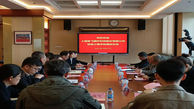 3月17日,上海晋飞碳纤科技股份有限公司董事长朱家强、总经理王滨、研发总监孙昊、经理李洁就深入推进落实产学研合作来校考察座谈。副校长李家乐、科技处处长胡庆松、社会协同与校友事务处处长钟俊生、工程学院院长曹守启及教师代表参加。