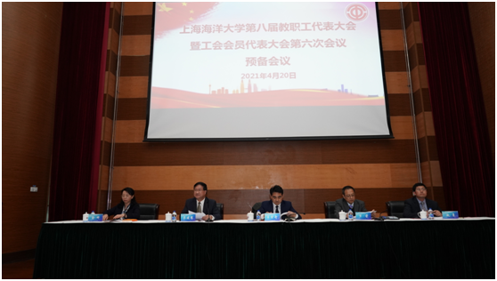 4月20日下午,学校第八届教职工代表大会暨工会会员代表大会第六次会议在图文信息中心104会议室顺利开幕。本次大会的主题是:以聚人心、汇民智、办实事、开新局,谱写“从海洋走向世界,从海洋走向未来”的现代化新篇章。全体校领导及104名正式代表和24名列席代表、特邀代表参加会议。会议由工会专职副主席金晔主持。