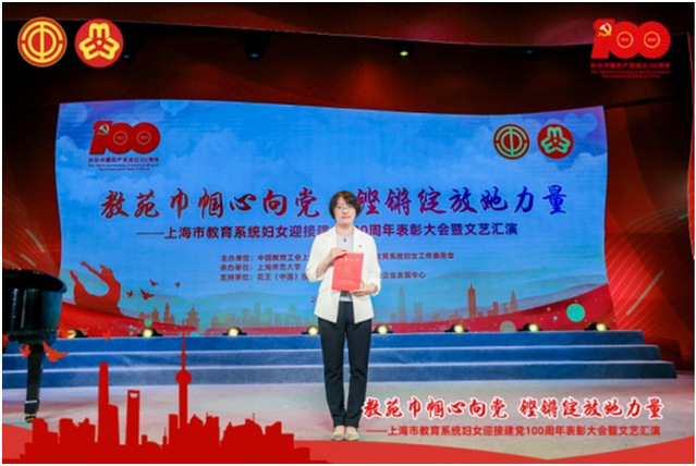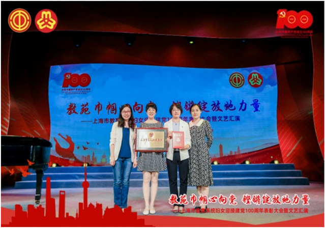 6月20日下午,以“教苑巾帼心向党·铿锵绽放她力量”为主题的上海市教育系统妇女迎接建党100周年表彰大会暨文艺汇演在上海师范大学隆重举行。上海市妇联副主席翁文磊、上海市总工会副主席桂晓燕、上海市教委副主任毛丽娟、上海市教育系统妇工委主任李蔚、上海市教育工会副主席吉启华等领导参加会议。会上对全国三八红旗手、全国五一巾帼标兵(岗)、全国巾帼建功标兵、全国巾帼文明岗、上海市三八红旗手(集体)、上海市教育系统三八红旗手(集体)等进行了表彰。2019-2020年度上海市三八红旗集体获得者信息学院“数字海洋”科研团队、2019-2020年度上海市教育系统三八红旗手获得者食品学院焦阳老师分别受到表彰并上台领奖。会上,还对教育系统女教工健身操展示活动获奖单位进行了颁奖,校工会常务副主席、妇工委主任金晔上台领奖。