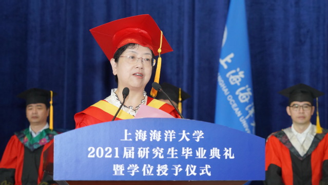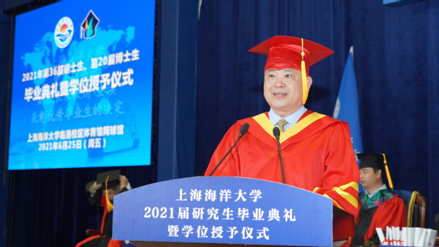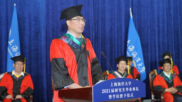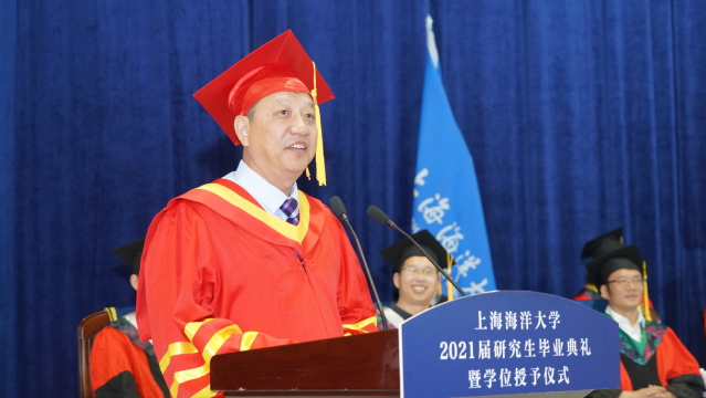 上午9时,上海海洋大学2021届研究生毕业典礼暨学位授予仪式在庄严的国歌声中拉开帷幕。校学位评定委员会主席、校长万荣致辞,他代表学校对圆满完成学业的研究生毕业生表示祝贺,对为研究生培养辛勤工作的导师、教职员工、家长们和社会各界人士表示感谢。万荣衷心希望,毕业生们厚植爱国主义情怀,立大志、明大德、成大才、担大任;践行卓越创新理念,秉持开放理念和自强精神,自我发展、自我研究;攻坚克难、求真务实,努力把自己塑造成为适应时代发展和社会进步的时代先锋、国家栋梁。万荣还希望同学们珍视健康,保持健康之态、悦美之心,坦然面对生活中的顺境和逆境,切实感受生命的意义和价值。