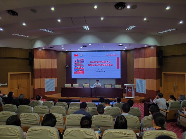 6月28日,校党委书记王宏舟以《在百年党史中汲取力量,投身海洋强国新征程新发展》为题,为机关党员讲授了一堂深刻而生动的专题党课。王宏舟指出,中国共产党是善于创造奇迹的党,中国共产党人是善于创造奇迹的人,党在不同历史时期培育、形成的精神有90多种,这些精神谱系反映了中国共产党人的精神信仰和价值追求。共产主义理想信念是中国共产党人精神谱系之“魂”,以人民为中心的理念是中国共产党人精神谱系之“根”,实事求是的务实取向是中国共产党人精神谱系之“本”,呼应时代的创造精神是中国共产党人精神谱系之“神”。学校校史校训体现的精神与之高度契合,“勤朴忠实”的校训精神在不断升华演进中,全方位体现了百年党史的魂、根、本、神,是中国共产党人精神谱系在海大的生动诠释与扎实践行。