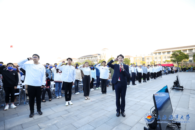 全体校领导,学院院长为新生代表佩戴校徽,对新生而言,这枚校徽,意味着正式成为一名海大人。所有学生在校研究生会执行主席张江栋的带领下集体宣誓,新生接过时代的重任,做有理想、敢担当、能吃苦、肯奋斗的新时代好青年。