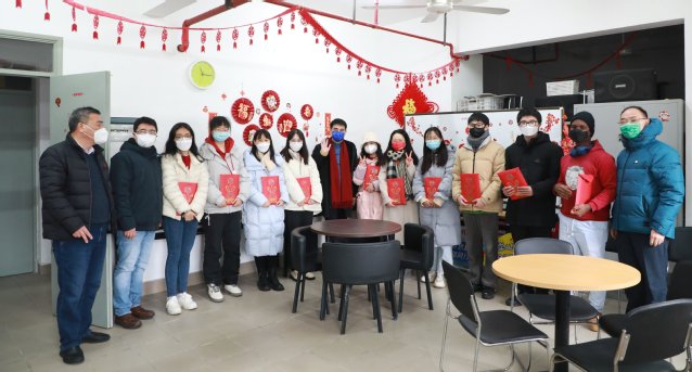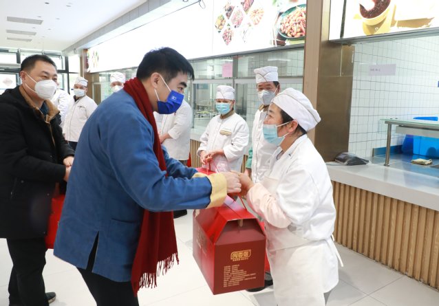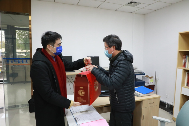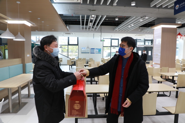 看望留校学生代表,询问学生学习生活情况,并送上新春慰问