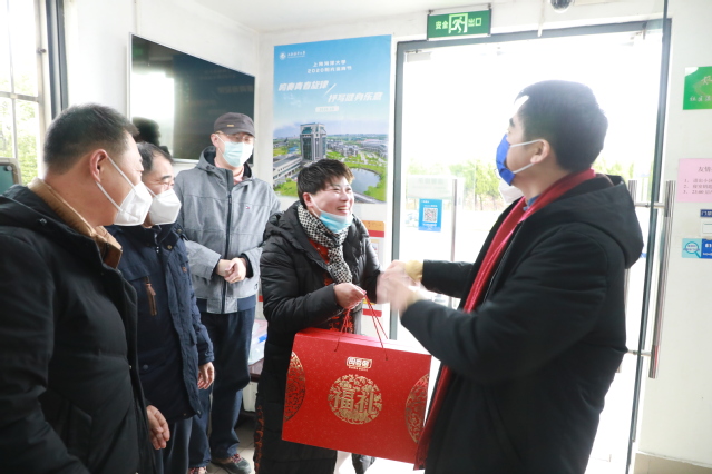 1月22日,农历大年初一,上海海洋大学党委书记王宏舟先后来到“淞航”号、第三餐厅、一号门校门、门诊部、保卫处、第十五小区、学院楼、行政楼,看望慰问春节期间留校的学生和坚守一线的教职员工,向他们表达新春祝福!王宏舟勉励同学们以校为家、安心学习生活,感谢教职员工的假期坚守和辛勤付出,祝愿大家身体健康、阖家幸福、兔年大吉!
