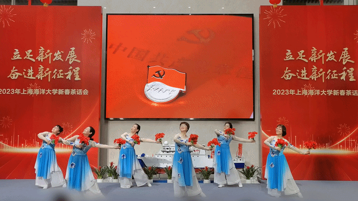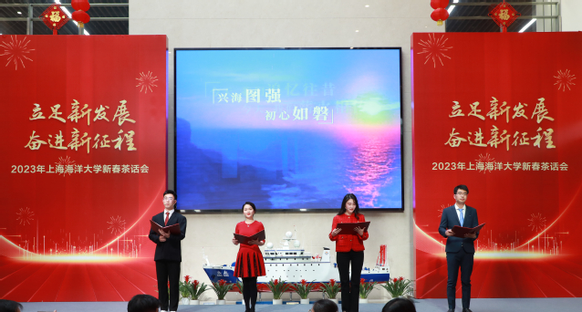 最后,全体师生齐唱校歌,2023年上海海洋大学新春茶话会在歌声中圆满结束。