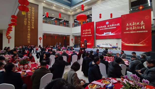 在农历癸卯兔年元宵节来临之际,2月3日下午,学校2023年新春茶话会在海洋科技大楼大厅举行。现场张灯结彩、喜气洋洋,师生员工代表欢聚一堂,共话发展。校党委书记王宏舟致辞并通报一年来学校改革发展情况,党委副书记、校长万荣宣布2022年度目标责任制考核结果。全体校领导,离退休老领导、老同志代表,校友代表,校党委委员、纪委委员、民主党派主委,校学术委员会委员、校学位评定委员会委员、专家学者代表、学生代表等出席团拜会。茶话会由党委副书记、副校长宋敏娟主持。