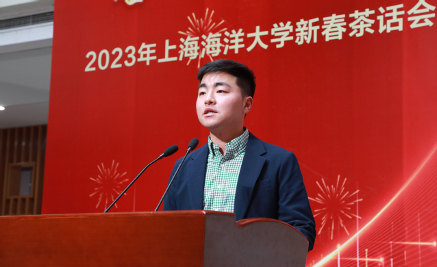 老领导代表、原党委书记叶骏致辞,他表示,过去的一年,学校紧抓机遇迎难而上,取得了不平凡的成绩,对在疫情期间得到学校无微不至的关心和帮助深表感谢,衷心祝愿学校发展更上一层楼。上海校友会副会长、上海费澳德食品有限公司总经理徐鹏起作为校友代表发言,水产与生命学院张文博、海洋科学学院于溪、食品学院丁兆阳、海洋生态与环境学院高春梅作为教师代表发言,分享工作体会、科研感悟和育人心得,表达了愿与学校同频共振、同谋发展的信心和决心。