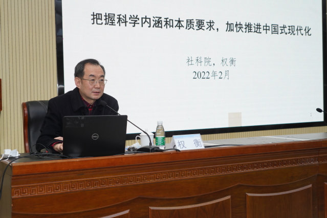 培训期间,上海社会科学院党委书记权衡研究员以“把握科学内涵和本质要求,加快推进中国式现代化”为主题作专题报告,围绕党的二十大报告,从把握好世界各国现代化的共同特征、把握好中国式现代化的中国特色及本质要求、上海加快高质量发展与建设现代化引领区的几点思考三个方面,详细讲解了中国式现代化的科学内涵和本质要求。