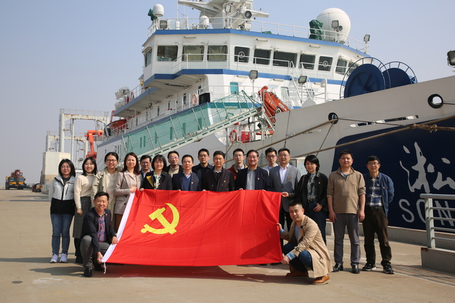 党员们首先来到了远洋渔业资源调查船“淞航”号上进行参观。在驾驶室内,船长刘志良热情地向党员们介绍了“淞航”号的建造情况、主要功能和任务执行情况。他表示,“淞航”号的诞生可谓恰逢我国实施海洋强国战略——由海洋大国向海洋强国目标迈进的机遇期,为我们开发、利用和养护海洋资源提供了良好的条件。来到甲板上的作业平台,党员们集中参加了升旗仪式,并重温了入党誓词,在庄严的国歌声中,在鲜艳的五星红旗下,在铿锵的誓言中共同感悟初心和使命。