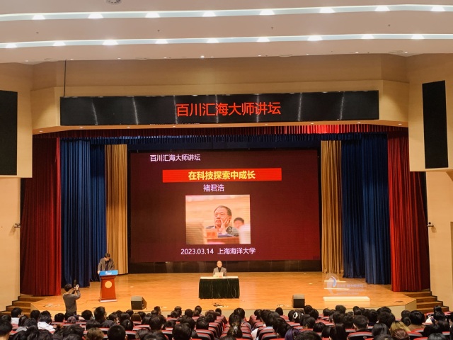 3月14日下午,中国科学院院士褚君浩莅临上海海洋大学百川汇海大师讲坛,作题为“在科技探索中成长”的报告。报告前校党委副书记、副校长宋敏娟热情接待了褚君浩教授。500余名师生现场聆听。