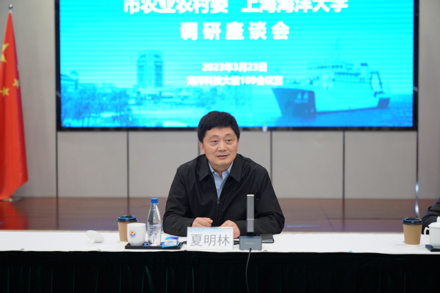 3月23日下午,市农业农村委员会党组成员、副主任,市乡村振兴局副局长夏明林一行赴上海海洋大学调研,调研农业科技创新工作。校长万荣、党委副书记吴建农陪同调研并参加座谈会。座谈会由吴建农主持。