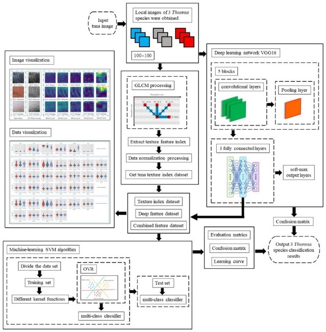 近日,渔业科学领域的世界顶尖级期刊《Canadian Journal of Fisheries and Aquatic Sciences》发表了上海海洋大学远洋渔业科学与技术创新团队在金枪鱼渔获智能识别方面的最新研究成果“Automatic classification of the phenotype textures of three Thunnus species based on the machine-learning SVM algorithm”。海洋科学学院欧利国博士为第一作者,导师刘必林、陈新军教授分别为通讯作者和第三作者。