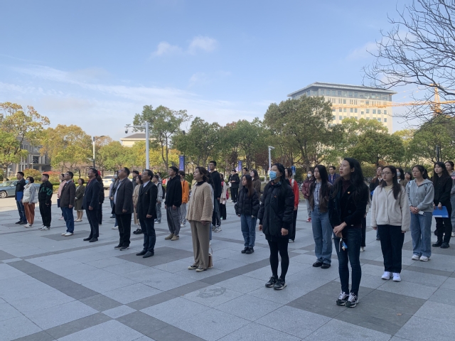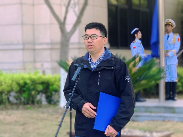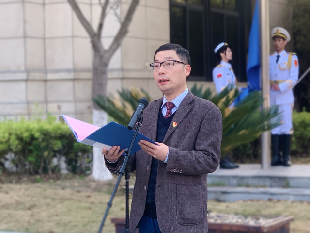 4月3日上午7:30,外国语学院“树牢总体国家安全观,奋进时代新征程”主题活动月启动暨升旗仪式在行政楼门前广场举行。校党委副书记吴建农,校党委常委、宣传部部长郑卫东,外国语学院领导班子、党委委员、各党支部书记、各系部负责人及师生代表出席。升旗仪式由学院党委副书记刘海为主持。
