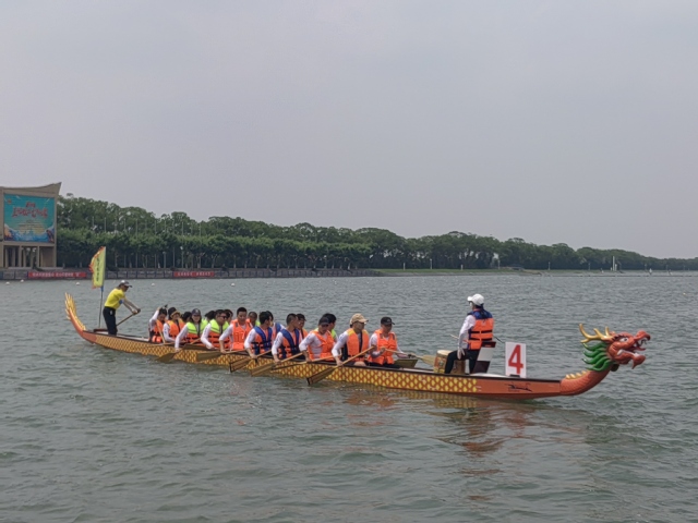参加比赛的教工们抱着以船会友的宗旨,来到东方绿舟与老友新朋汇聚在绿舟湖中劈波斩浪、龙舟竞渡。比赛在人们的翘首以待中终于开始了。各队的选手们意气风发,鼓声响起,龙舟便如一支离弦的箭,在平静无波的绿舟湖上来去如飞。在第一轮出场的8支队伍中,我校教工龙舟协会以领先一个船身的绝对优势率先到达终点,引得现场所有观众的掌声和喝彩。经过各组激烈的比拼,我校教工龙舟队以55秒62的成绩获得高校A组亚军,创历史最好成绩,同济大学教工龙舟队以55秒60获得同组别的冠军,两支队伍携手共同参加了精英表演赛。