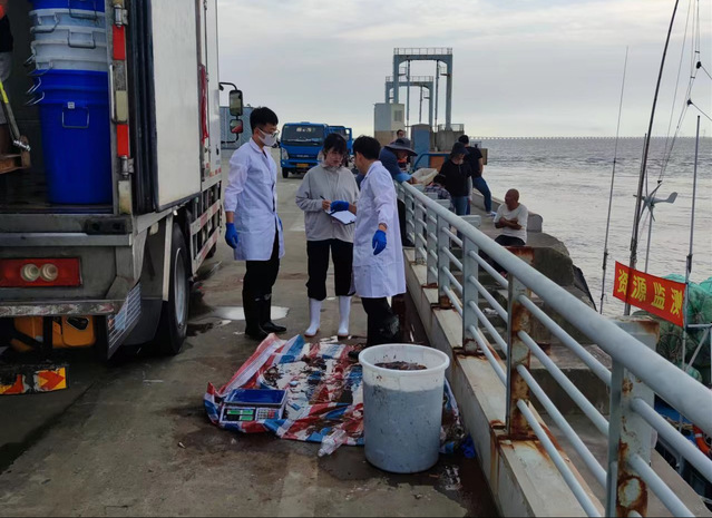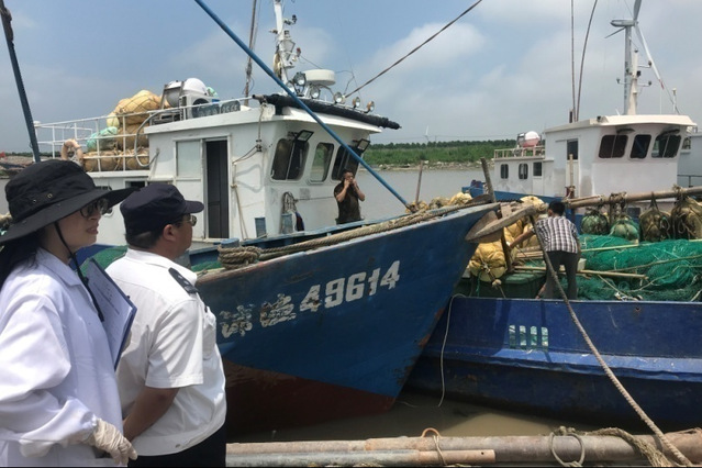 7月16日,师生协助渔政执法人员开展渔船停靠和渔获物检查