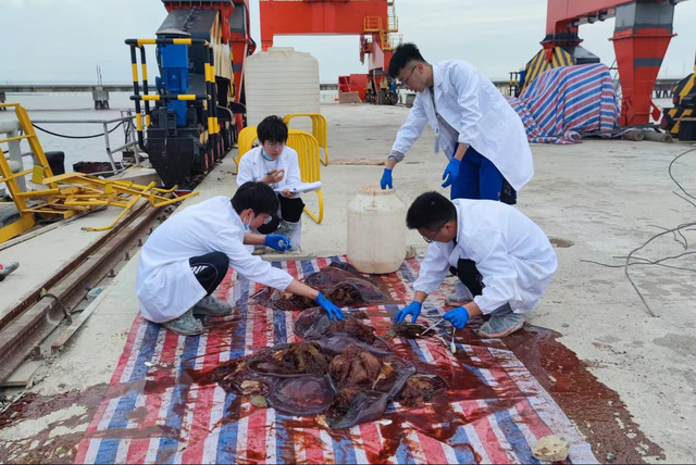 自2017年开始,我国海洋渔业管理走出了重要一步——试点实施海洋渔业捕捞限额制度。经反复研究论证,上海市于2019年启动海蜇限额捕捞专项试点,委托我校参与试点方案研究与论证,以及专项管理实施过程中的渔获物上岸监测统计、渔获物样本生物学测定、数据分析与报告等工作,并安排人员作为科学观察员随船出海。今年我校连续第5年参与上海市海洋伏休期间的专项限额捕捞管理工作。目前,叶旭昌老师正在海上进行生产现场科学观察。8月1日至9月16日,这支团队还将继续参与上海市另一新的捕捞限额管理专项试点——桁杆拖网渔业的的限额捕捞管理工作。