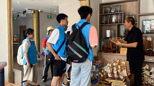 7月1日,“走进渔村,走近渔民”海洋科学小队来到上海市金山区海洋海塘管理所。项目组成员一同前往拜访了“非遗”手工舢板船制造博物馆的老师傅——张道余,跟随张师傅的脚步,项目组成员参观了中国手工船模,了解了中国的船舶历史和船舶在渔业发展中的重要作用。