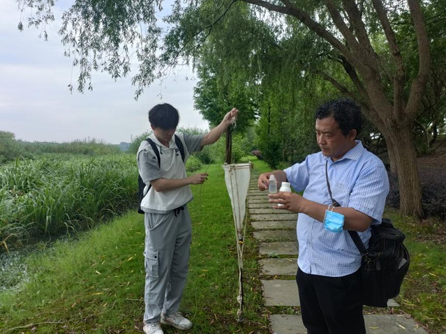7月9日,海洋生态与环境学院焦俊鹏老师在太浦河周边的白渔荡湿地指导学生运用照度计、水色计、浮游生物网等工具完成社会实践采样工作,为后续水质监测工作做准备。