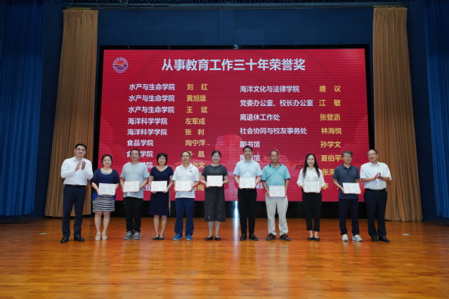 水产与生命学院李伟微、海洋文化与法律学院吕霁虹作为优秀教师代表发言。会上还举行了新教工入职宣誓仪式。在信息学院副教授王晓明领誓下,26位新教工庄严宣誓,忠诚教育,立德修身,矢志不渝为国家发展、民族振兴努力奋斗!