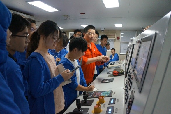在履行社会服务责任外,“淞航”号还肩负着服务人才培养的重任。迄今为止,累计450人次硕士、博士研究生直接随船参加远洋科考航次任务,25人次本科生参加远洋航次实习,在每一个航次中,船舶管理中心团队都在生活上给予他们贴心的照顾。为了使同学们能够尽快适应海上生活,“淞航”团队安排船员和同学们生活结对,保障同学们生活无忧;同时,船员和实验员就船舶的安全、航行驾驶、科考设备操作等对学生们进行悉心指导,使得同学们很快融入海上航行生活,让他们虽离家万里,也有心安处即是家的归属感,并顺利完成学习、实验、科考任务。