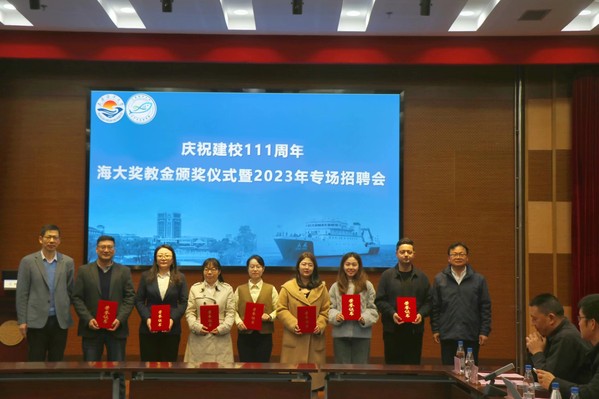 近日,上海海洋大学“海大奖教金”颁奖典礼暨2023年专场招聘会于图文102召开。广东海大集团海大研究院人力资源总监陈力山、广东海大集团海大研究院水产饲料技术研究所王磊(校友)广东海大集团海大研究院水产饲料技术研究所郭腾飞(校友)、研究院人力资源高级经理纪萃萃、动保事业部人力资源高级经理洪梅、水产饲料技术研究所经理孙培英(校友),校社会协同与校友处处长江卫平、水产与生命学院党委书记高晓波、研究生院副院长何爱华、水产与生命学院副院长陈再忠以及获奖教师代表、2023届部分毕业生出席本次会议。会议由水产与生命学院党委副书记张亚琼主持。