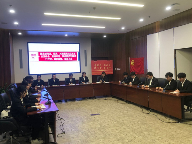 专题组织生活会现场悬挂团旗,团员胸前佩戴团徽,为开展好此次专题组织生活会,团支书谭淼回顾了团支部团员和青年主题教育开展情况,也指出了团支部在开展团员和青年主题教育过程中存在的理论学习不够深入、创新形式不足等问题,并针对性的提出了下一步改善举措。随后,团支部书记、委员、全体团员逐个进行了交流发言,分享学习体会、查找不足。支部成员发言真诚,剖析深刻,开诚布公,起到了凝聚共识、共同提高的作用。