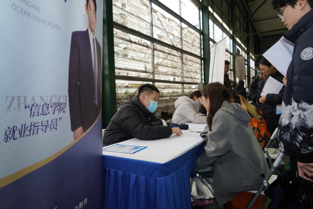 招聘会现场气氛热烈,企业招聘展位前排起了长队。舟山中远海运重工有限公司、上海知从科技有限公司等3家企业现场与毕业生签订三方协议和见习协议。