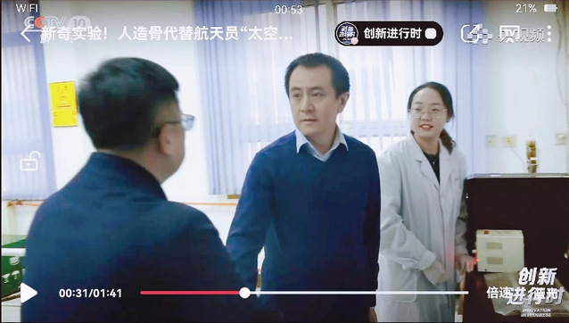 参与中央广播电视总台《人造骨替代航天员“太空培训”》节目拍摄——现场实验操作