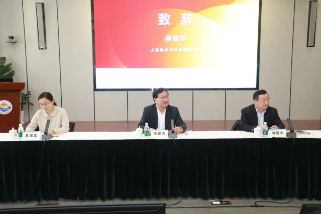 上海海洋大学党委副书记吴建农代表学校致辞,他表示上海海洋大学是临港新片区唯一一所具有生物技术、生物科学、生物医药学科的双一流建设高校,拥有完整的学科、平台和人才培养体系。学校积极对接国家战略和上海、临港的生物制药产业需求,期待通过校企合作,共建校企高新技术联合攻关机制,共同培养生物医药企业、行业所需专业人才,共探以生物医药学科为牵引的校企创新发展新模式,促进临港生物医药产业竞争力和创新力提升。